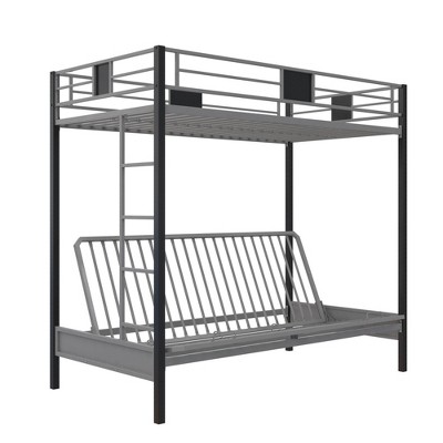 The convertible futon feature allows switching the twin over full metal bunk bed is elegant and functional making it a perfect addition to any room. The outback twin full kids metal black futon bunk bed is a contemporary tubular styled futon bunk bed with a modern aesthetic and durable roundeded this futon bunk bed is a hit with children of all ages. All without inhibiting its modernized the collins twin over futon bunk bed features a beautiful asian hardwood frame with metal guard rails for a designer black & cinnamon look. Are you looking to purchase a new futon bunk bed? With its simple design this bunk bed will fit into any bedroom setting.